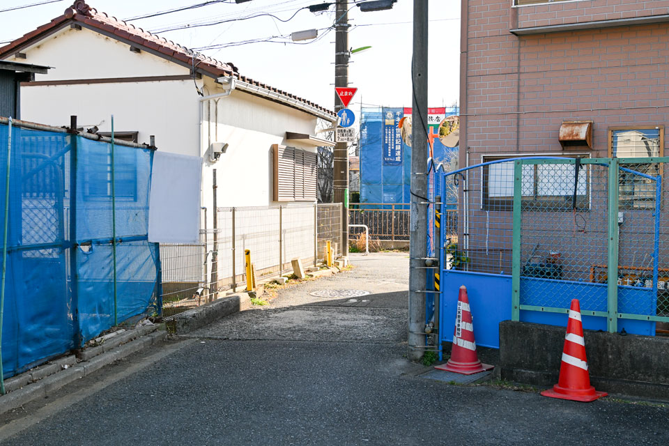 多摩堤通りを渡ってすぐ、西に向かう道路。