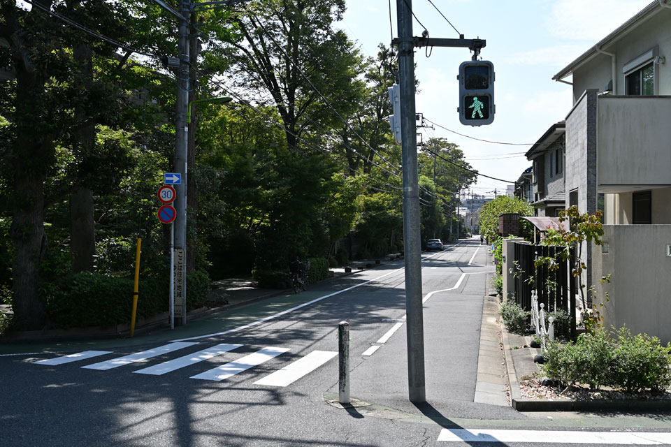 多摩堤通りを渡ってすぐ、西に向かう道路。